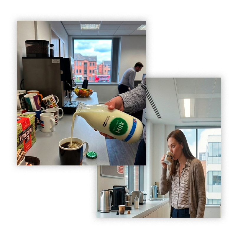 - Our office milk comes directly from the dairy — cutting out unnecessary food miles and supporting local businesses